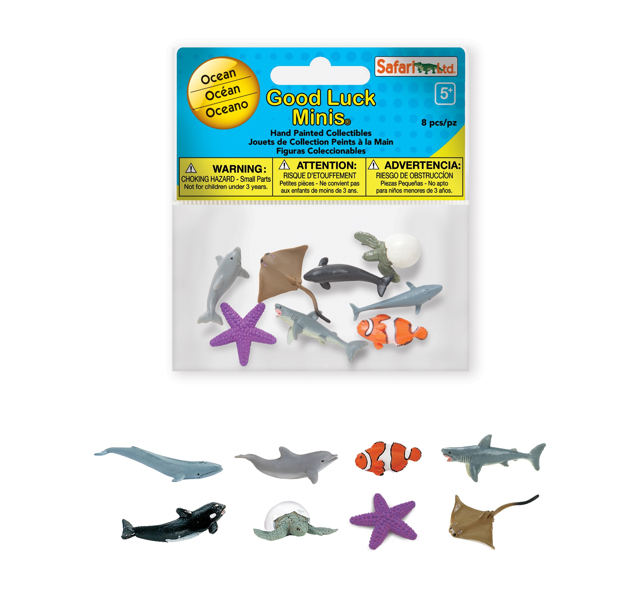 Kolekce ručně malovaných figurek, které nejsou větší než kancelářská sponka a díky malému rozměru jsou ideální na cestování. V této sadě najdete 8 figurek z hlubin oceánu - např. delfína, velrybu, Klauna očkatého, žraloka, mořskou želvu, hvězdici a Rejnoka. Rozměr figurek 2 - 2,5 cm. Rozměr balení 9 x 10 cm.Balení obsahuje 8 kusů.Nevhodné pro děti do 3 let. Doporučený věk je 5+. Safari Ltd. – popis firmy Safari Ltd. je americká firma zaměřená na výrobu ekologických hraček. Na jejím počátku v roce 1982 byla dětská karetní hra na téma ohrožené druhy zvířat. V roce 1986 firma podepsala licenční smlouvu s Carnegie Museum of Natural History. Tato licence umožnila vyrábět autentické modely dinosaurů ve spolupráci s jejich nejlepšími paleontology. S postupným rozrůstáním firmy se začala rozšiřovat i série modelů, které se už neomezovaly jen na dinosaury, ale nabízely pohled na celý svět. Hlavní myšlenkou firmy Safari Ltd. je „učit se hrou“. Navrhuje figurky zvířat tak, aby byly naprosto autentické a svou kvalitou co možná nejvíce odpovídaly skutečnosti. Díky svému ručnímu zpracování je každý výrobek jedinečný. Vzhledem k stále novým vědeckým objevům jsou figurky neustále aktualizovány, mají tak pozitivní vliv na vzdělávání dítěte v oblasti přírody a její ochrany. I proto jsou velmi oblíbenou vzdělávací pomůckou pedagogů celého světa. Touto koncepcí si firma Safari Ltd. vysloužila řadu ocenění za podporu vzdělanosti a význam ochrany životního prostředí a ohrožených druhů. V současné době firma Safari Ltd. nabízí nejen samostatné modely, ale i figurky, které jsou tématicky zařazeny do sad, a to podle oblastí, kde se vyskytují, nebo podle svého živočišného druhu. Můžete se tak detailně seznámit se zvířaty Arktidy, pouště, oceánu a jiných oblastí, nebo zkoumat druhy žab, motýlů, velryb a spousty dalších. Safari Ltd. však neopomíjí ani svět lidí a jeho historii a dílo, a tak můžete poznat nejvýznamnější stavby světa, občanskou válku v Americe, idiány, pravou africkou vesnici, ale dokonce i dopravní prostředky a vesmír. Pro opravdové sběratele jsou k dispozici rozšířené sady! Samostatnou kapitolou výrobků firmy Safari Ltd. jsou produkty z kolekce Safariology. Jedná se o soubor pomůcek do přírody a modely pro pozorování života živočichů a rostlin. Tato kolekce zahrnuje dalokohledy, kompasy, krabičky na brouky, lupy a spoustu dalších nástrojů pro bádání, ale i životní cykly několika druhů zvířat a rostlin, jako je např. mořská želva, kuře, komár, včela, či fazole, ba dokonce i vývoj člověka od svého prapočátku až dodnes. Po tři generace firma Safari Ltd. pokračuje kupředu s jasnou vizí. Rok co rok vytváří stále nové hračky, které vzdělávají a ukazují našim dětem kouzla života na této planetě.