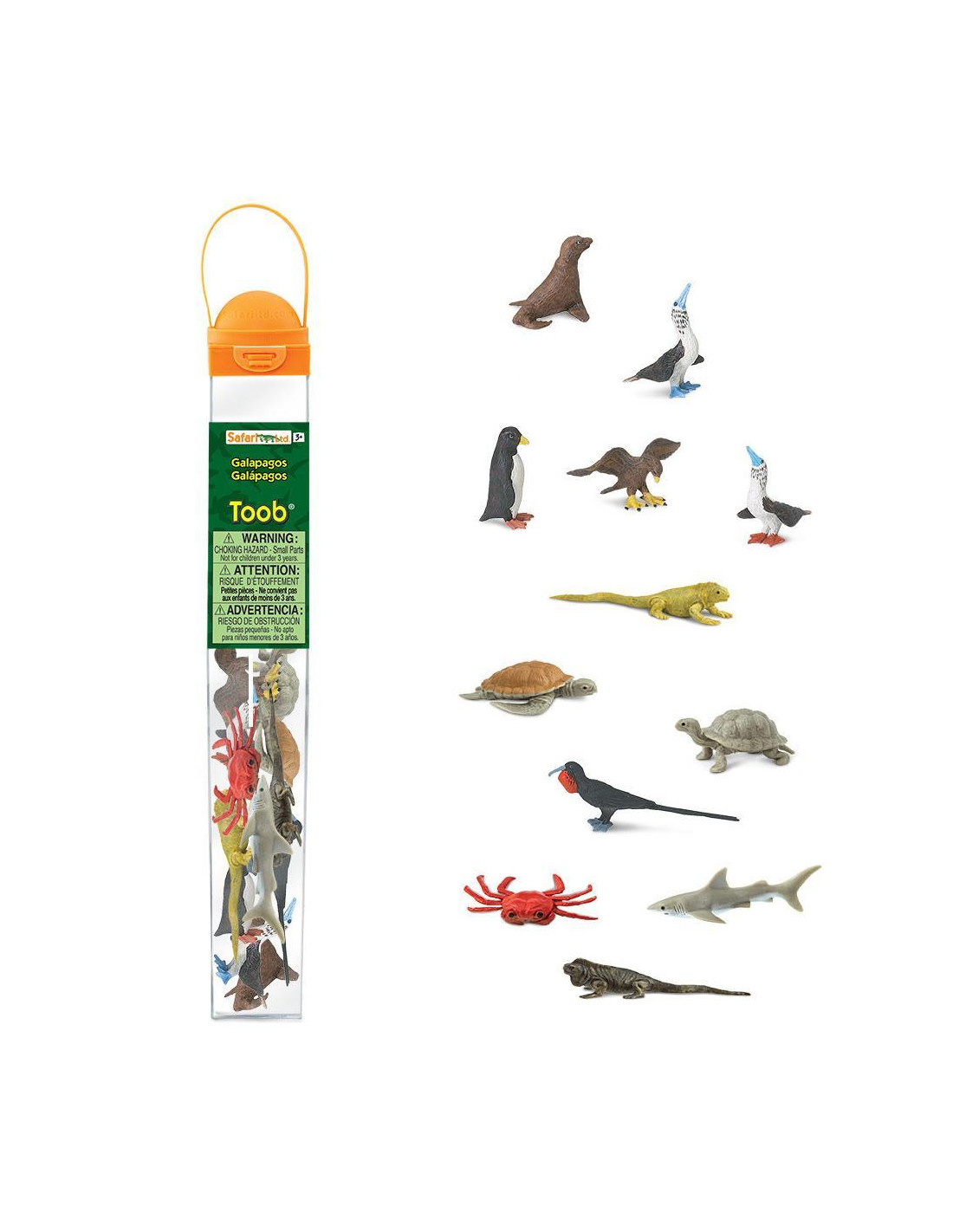 Tuba obsahuje 12 figurek zvířat z Galapág: tuleně, tereje modronohého, tučňáka, jestřába, suchozemské želvy, tereje červenonohého, fregatky, leguána suchozemského, mořské želvy, kraba, žraloka a leguána vodního._x005F_x000D_ Ručně malované figurky vyvedené v detailech dokáží dítěti pomoci rozeznat typické znaky jednotlivých zvířat. Názvy zvířat v angličtině najdete obvykle na břiše figurky._x005F_x000D_ Práci s pomůckou je možné rozšířit výrobou třísložkových karet. Jako podklad pro jejich tvorbu můžete použít originálního obrázku figurek, který najdete zde._x005F_x000D_ Slovníček:_x005F_x000D_ Seal – tuleň krabožravý_x005F_x000D_ Blue-Footed Booby – terej modronohý_x005F_x000D_ Penguin – tučňák galapážský_x005F_x000D_ Hawk – káně galapážské_x005F_x000D_ Land Tortoise – želva sloní_x005F_x000D_ Red-Footed Booby – terej červenonohý_x005F_x000D_ Frigate – fregatka obecná_x005F_x000D_ Land Iguana – leguán suchozemský_x005F_x000D_ Sea Turtle – mořská želva_x005F_x000D_ Crab – krab světlonohý_x005F_x000D_ Shark – žralok velrybí_x005F_x000D_ Water Iguana – leguán mořský_x005F_x000D_ _x005F_x000D_ Velikost figurek: 4-7,5 cm_x005F_x000D_ Doporučený věk: 3+_x005F_x000D_ _x005F_x000D_ Safari ltd. Toobs_x005F_x000D_ - Rozměr tuby 5 x 5 x 33cm_x005F_x000D_ - Každá figurka je detailně navržená a ručně malovaná_x005F_x000D_ - Balení se dá používat opakovaně, dítko tak má perfektní krabičku, do které může repliky opět uklidit._x005F_x000D_ - Safari Ltd. je firmou ekologickou, které záleží na bezpečí našich dětí a planety. Také proto jsou všechny výrobky bez ftalátů a jsou velmi důkladně testovány._x005F_x000D_ Safari Ltd._x005F_x000D_ Safari Ltd. je americká firma zaměřená na výrobu ekologických hraček. Na jejím počátku v roce 1982 byla dětská karetní hra na téma ohrožené druhy zvířat. V roce 1986 firma podepsala licenční smlouvu s Carnegie Museum of Natural History. Tato licence umožnila vyrábět autentické modely dinosaurů ve spolupráci s jejich nejlepšími paleontology. S postupným rozrůstáním firmy se začala rozšiřovat i série modelů, které se už neomezovaly jen na dinosaury, ale nabízely pohled na celý svět._x005F_x000D_ Hlavní myšlenkou firmy Safari Ltd. je „učit se hrou“. Navrhuje figurky zvířat tak, aby byly naprosto autentické a svou kvalitou co možná nejvíce odpovídaly skutečnosti. Díky svému ručnímu zpracování je každý výrobek jedinečný. Vzhledem k stále novým vědeckým objevům jsou figurky neustále aktualizovány, mají tak pozitivní vliv na vzdělávání dítěte v oblasti přírody a její ochrany. I proto jsou velmi oblíbenou vzdělávací pomůckou pedagogů celého světa. Touto koncepcí si firma Safari Ltd. vysloužila řadu ocenění za podporu vzdělanosti a význam ochrany životního prostředí a ohrožených druhů._x005F_x000D_ V současné době firma Safari Ltd. nabízí nejen samostatné modely, ale i figurky, které jsou tématicky zařazeny do sad, a to podle oblastí, kde se vyskytují, nebo podle svého živočišného druhu. Můžete se tak detailně seznámit se zvířaty Arktidy, pouště, oceánu a jiných oblastí, nebo zkoumat druhy žab, motýlů, velryb a spousty dalších. Safari Ltd. však neopomíjí ani svět lidí a jeho historii a dílo, a tak můžete poznat nejvýznamnější stavby světa, občanskou válku v Americe, idiány, pravou africkou vesnici, ale dokonce i dopravní prostředky a vesmír. Pro opravdové sběratele jsou k dispozici rozšířené sady!_x005F_x000D_ Samostatnou kapitolou výrobků firmy Safari Ltd. jsou produkty z kolekce Safariology. Jedná se o soubor pomůcek do přírody a modely pro pozorování života živočichů a rostlin. Tato kolekce zahrnuje dalokohledy, kompasy, krabičky na brouky, lupy a spoustu dalších nástrojů pro bádání, ale i životní cykly několika druhů zvířat a rostlin, jako je např. mořská želva, kuře, komár, včela, či fazole, ba dokonce i vývoj člověka od svého prapočátku až dodnes._x005F_x000D_ Po tři generace firma Safari Ltd. pokračuje kupředu s jasnou vizí. Rok co rok vytváří stále nové hračky, které vzdělávají a ukazují našim dětem kouzla života na této planetě.