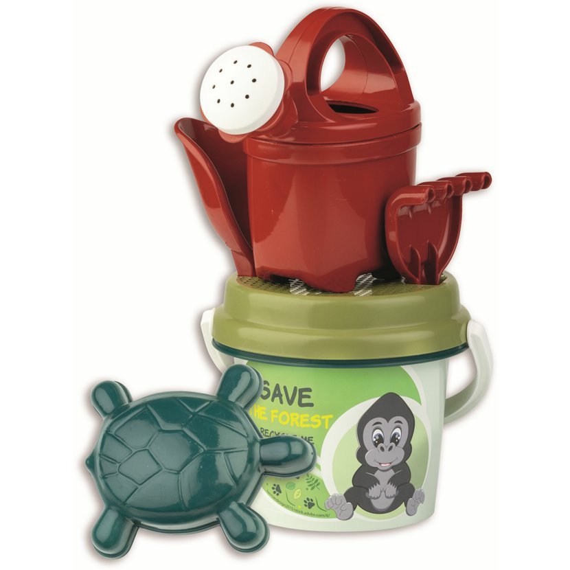 Sada na písek o 6 kusech - kyblíček, konvička 0,5 l, sítko, lopatka, hrabičky a tvořítko. Kyblík: průměr 13 cm, výška 11 cm. Váha sady: 0,35 kg.