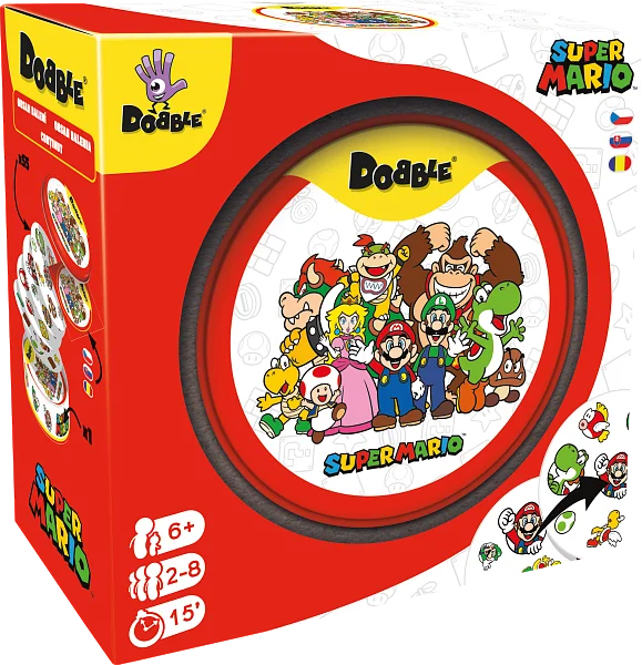 Postřehový bestseller se nyní vrací s oblíbenými postavičkami a ikonickými předměty ze Super Maria! Na každé kartě jich najdete 8 různých. Máte rádi Maria? Zahrajte si s ním a jeho přáteli i protivníky oblíbenou postřehovou hru Dobble! Hra je zaměřená na rychlost, postřeh a reflexy! Popis všech symbolů použitých ve hře najdete v pravidlech.