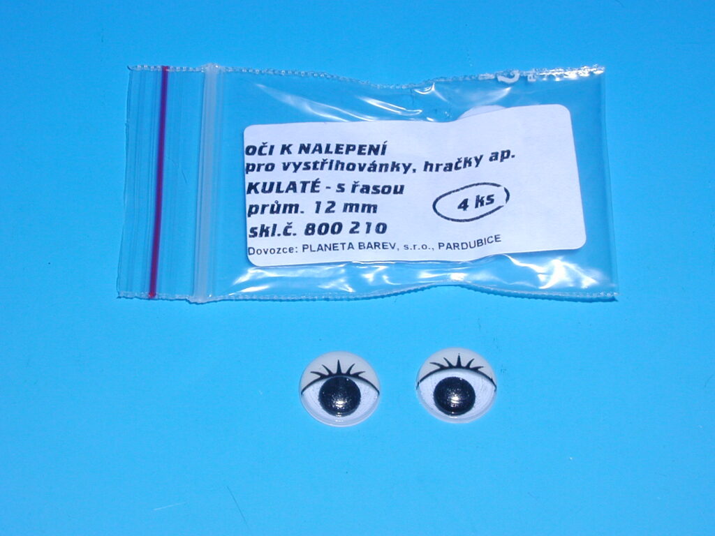 Oči kulaté s řasou 12mm/4ksSkladem více než 10 ks, odesíláme ihned12 Kč/ ks10 Kč bez DPH
