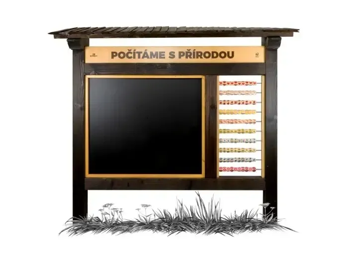 - Černá magnetická tabule 100 x 850 cm, počítadlo 10 řad, 10 ks kostek s různými motivy.