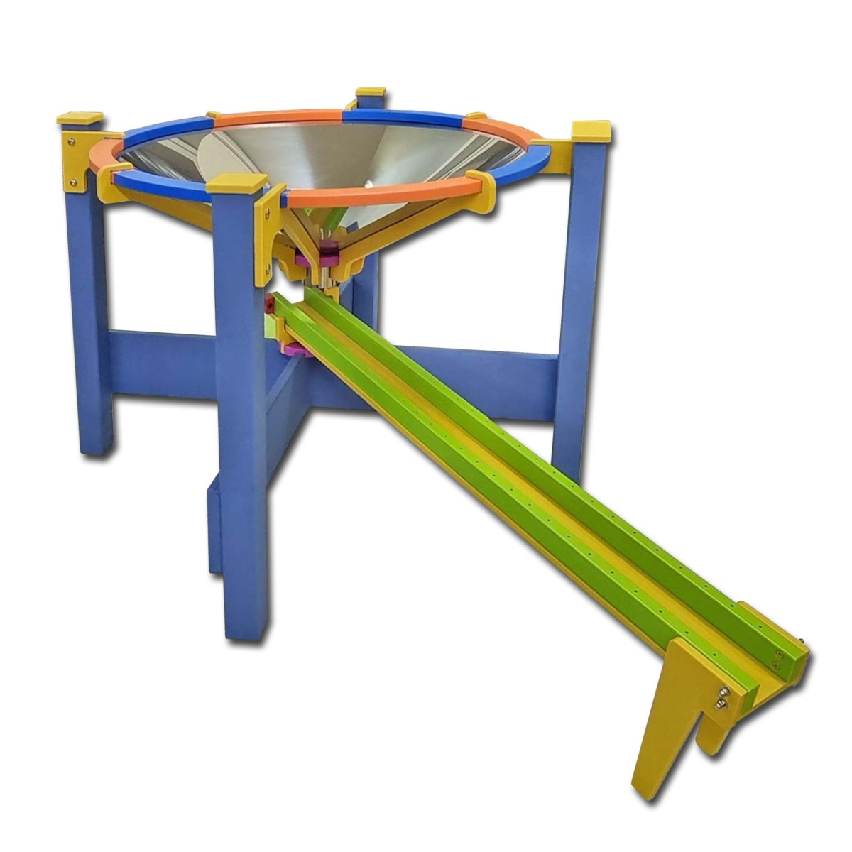 Sestava trychtýř může stát jako samostatný prvek a nebo jako součást větší kuličkové dráhy. Kulička obkrouží tychtýř více jak třicetkrát. Děti jsou facinované pozorováním dráhy kuličky a dokáží zklidnit.
