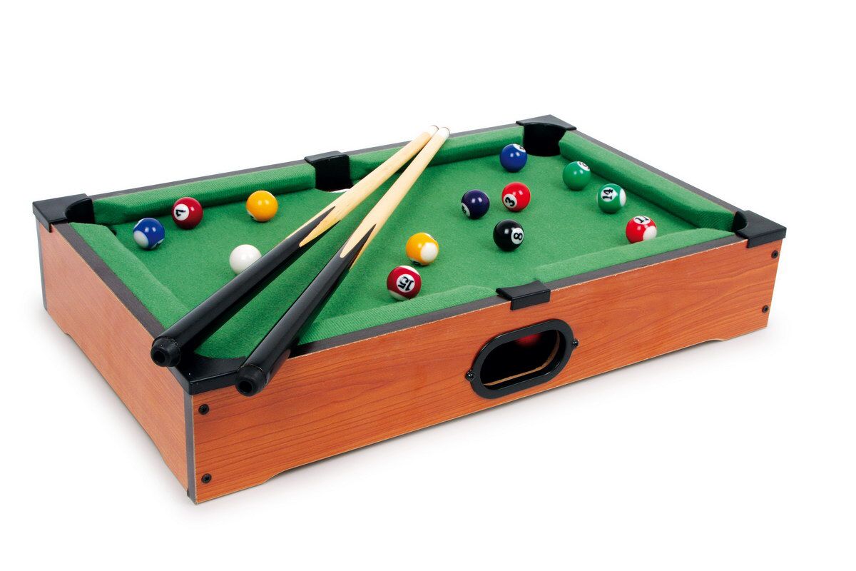 Tento malý kulečníkový stůl je určen pro zábavu a trénuje motoriku a koordinaci rukou a očí! Vybavený 2 tágy, koulemi, trojúhelníkem a křídou.